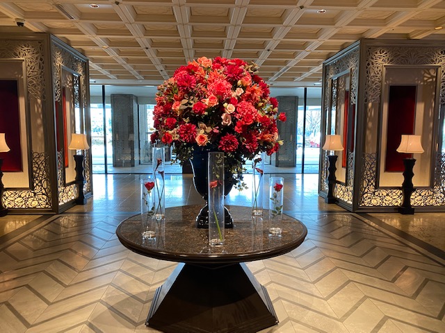 ちょうどまん延防止等重点措置期間中で、同一グループの同一テーブルへの案内を4人以内とすることとなっていたので、その人数内に分かれて着席です。テーブルとテーブルの間はとても広くて話ができる距離ではありませんが、感染対策はばっちりです。