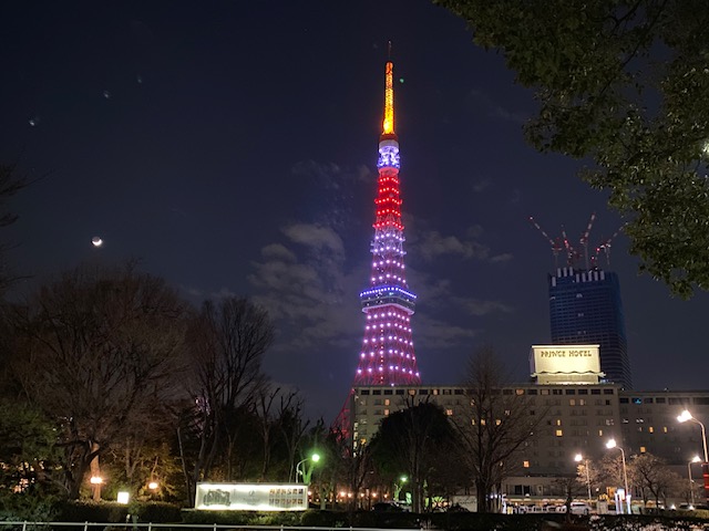 東京タワーのライトアップは色々なライティングがあって、帰るときの楽しみの一つです。
